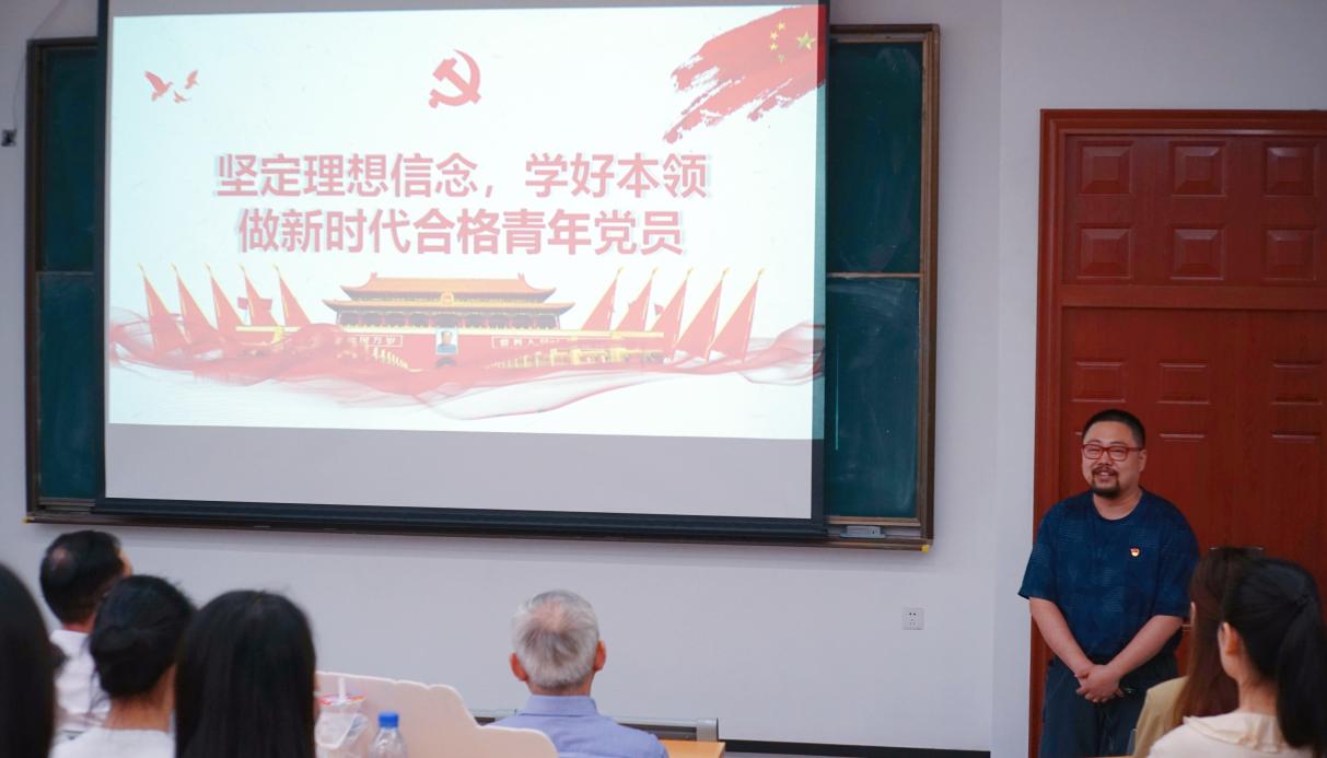 会议伊始,OK138太阳集团党委委员、教工第二党支部副书记殷子为以“做新时代优秀青年党员”为题,为学院毕业生党员们带来了一场有理论、有故事、有情怀的党课报告。