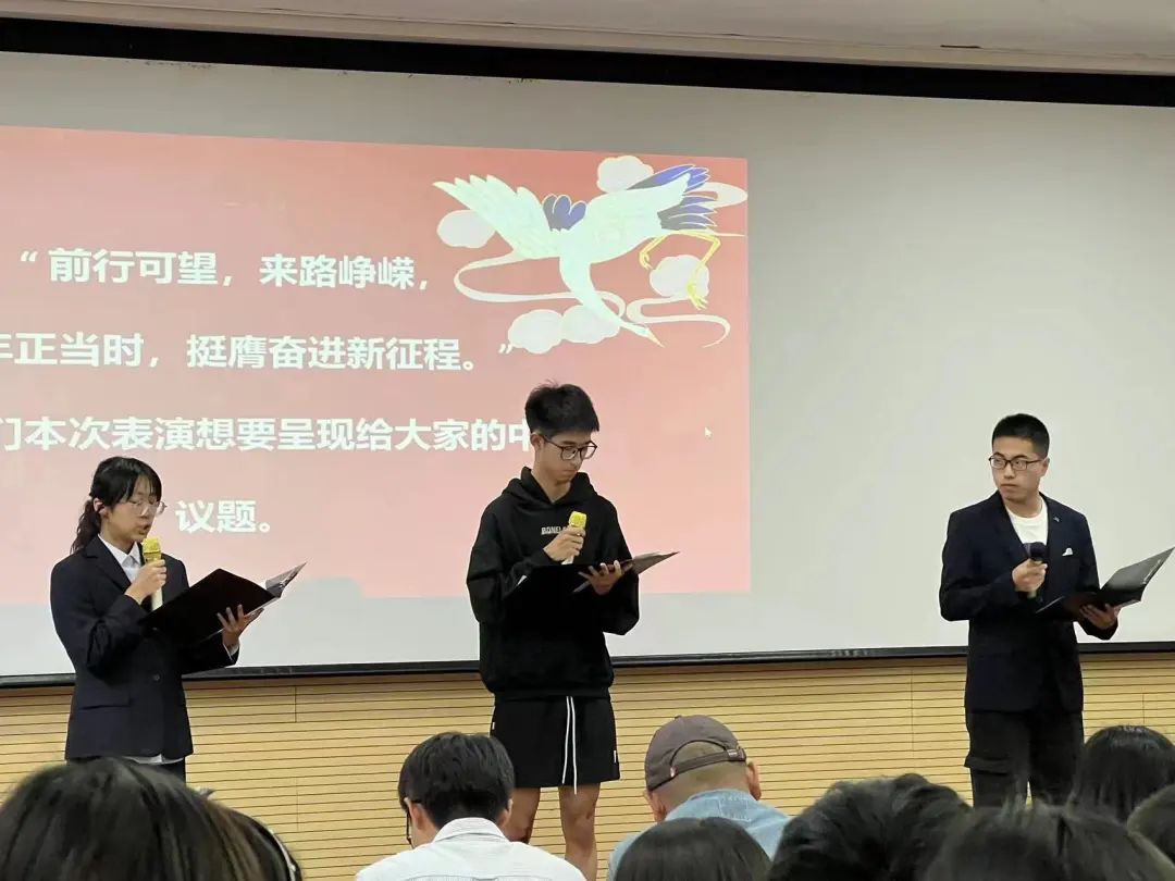 2022级园艺(中荷合作)专业3班团支部的团支书童麒铮带来微团课《推动绿色发展,建设美丽中国》,并结合情景剧生动阐述如何推动绿色发展,支部成员带来诗朗诵,表达了做新时代好青年的决心。