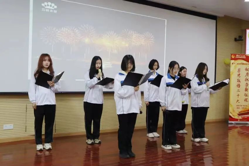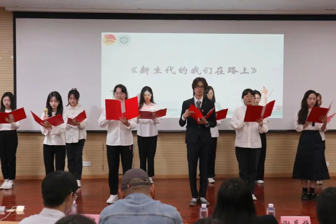 2022级园艺(中荷合作)专业1班团支部的团支书陈美霞在介绍完支部建设后,讲述了中国在“十四五”开局之年的一系列成就,随后支部团员带来朗诵展示——《祖国,你就是我要唱的那首歌》。