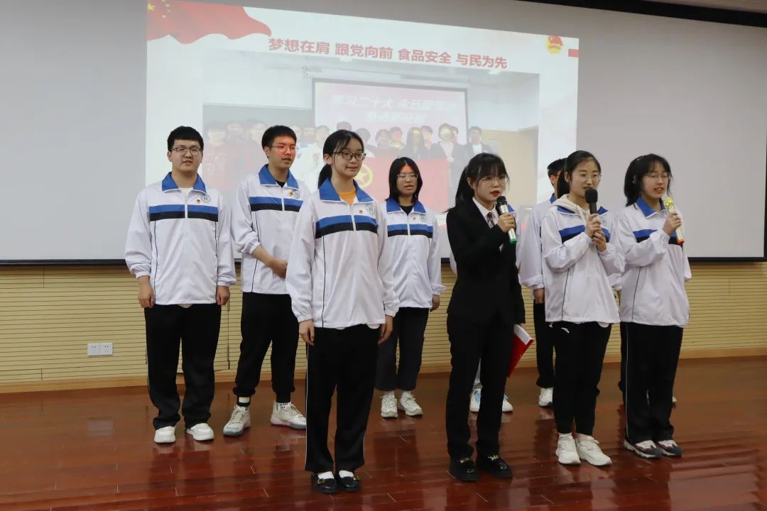 2022级食品安全与检测专业1班团支部分享了肝胆相照济苍生的吴孟超院士相关事迹,他的信仰之名将与日月同辉,接着分享团支部成员学习二十大精神的做法,最后支部成员齐声喊出:“梦想在肩、跟党向前;食品安全、与民为先。”