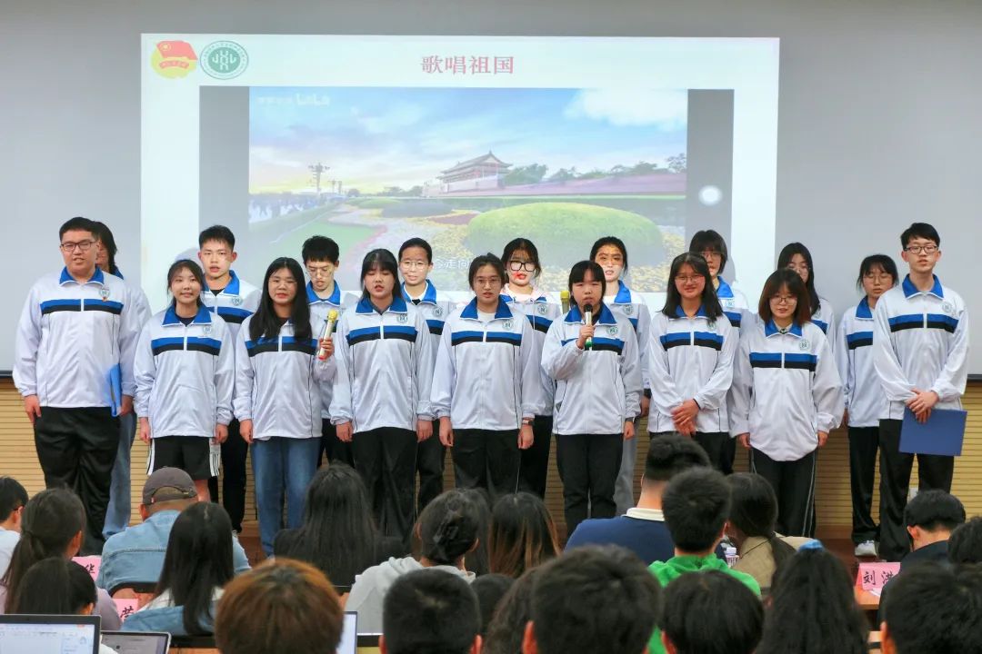 2022级生物科学(师范)专业2班团支部带来原创诗朗诵以及合唱《以青春之名,歌唱祖国》,以此感恩先辈们为我们如今的美好生活付出了血与汗,同时呼吁正处青春年华的我们筑大国生科之本根,展自强自立之绿叶,绽华夏智慧之繁花!