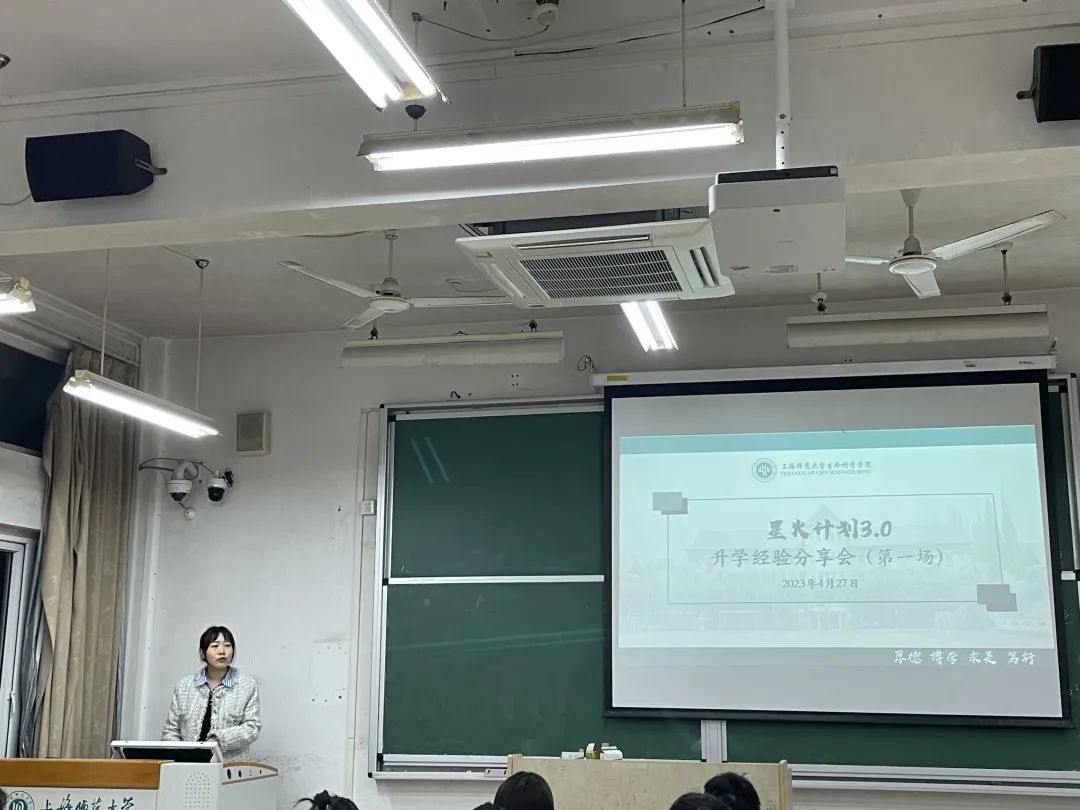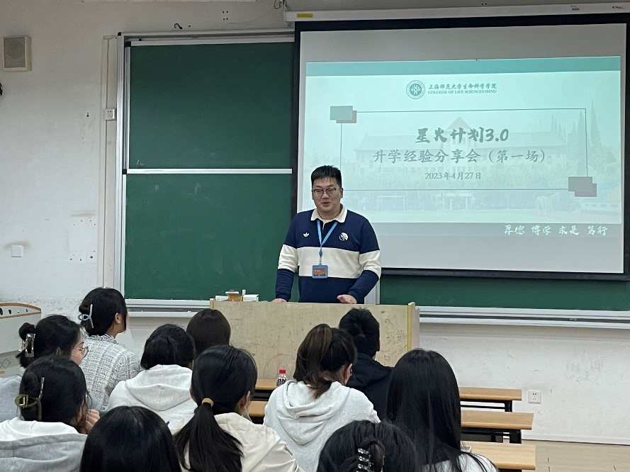 为帮助生科学子更好地明确个人发展目标,做好升学、就业规划,我院本科徐汇党支部组织开展2023年“星火计划3.0”活动。首场活动于4月27日在我校奉贤校区三教108顺利举行,本次分享会邀请了2023届5位优秀毕业生分享推免经验,内容涵盖研究生支教团推免专项计划介绍,预推免与面试经验分享,夏令营申请注意事项,文书三件套讲解,本硕贯通经验分享及北京生命科学研究所招生宣讲。