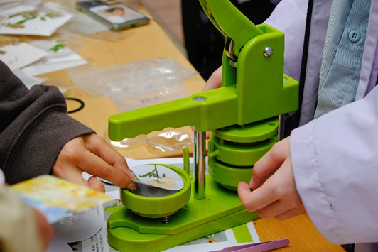 生命之声自然社以“春笺”为主题,用干花作为信笺,传递春天末尾的讯息,留存于小小的徽章之上。在短短一个小时里,生命之声自然社的路演摊位上一共制作了约100个干花徽章,大家挑选喜欢的花朵,拼接出属于自己的春日信笺,或繁复,或简约,告别五光十色的春日繁花,迎接夏日的明媚阳光。