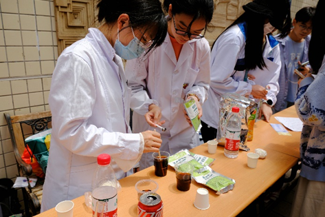 “安全新食代”科普宣讲队的主题为“食光”,可爱的社团吉祥物小辣椒玩偶吸引了不少观众。同学们先通过在宣讲区学习与食品添加剂相关的知识点,再到问答区进行知识问答,最后于实验区观看食品添加剂相关小实验“自制可乐”以及参加鱿鱼游戏“古早膨糖”。此次路演以丰富的形式,让同学们积极参与到活动当中,感受到食品的魅力,学习到对生活有所帮助的知识。
