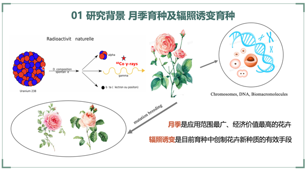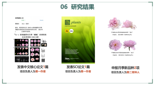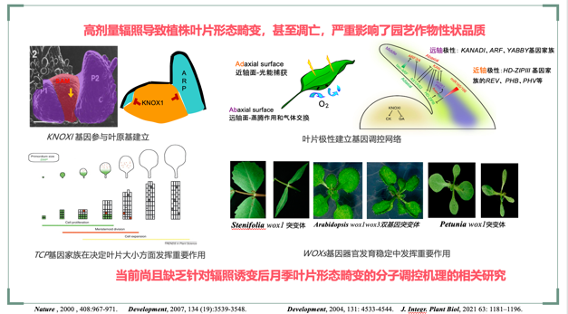 月季是应用范围最广,经济价值最高的花卉。辐照诱变是目前育种中创制花卉新种质的有效手段。辐照育种剂量选择不当会导致植株叶片畸变甚至凋亡,这严重影响了园艺作物的性状品质。该项目以此为切入点,揭示了辐照诱变后月季植株形态畸变、生理变化的分子机制,进而利用辐照诱变技术成功选育月季新品种2项,极大丰富了月季品种资源。