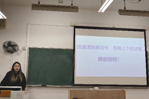 程晨同学从成语未雨绸缪引入,介绍了个人能力优点和薄弱点、行业认知、外在环境和未来工作规划,立志成为一名科研工作者。她强调,要达成这一目标,要始终保持着对生物遗传的兴趣,要不断培养透过问题看到本质的创新精神,更要有“板凳敢坐十年冷”的刻苦钻研精神。