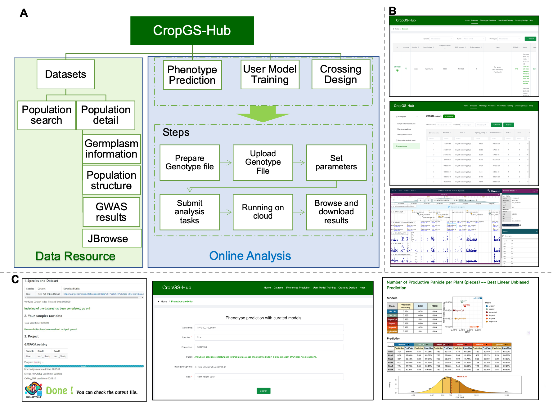 图2 | CropGS-Hub中主要模块和界面总览