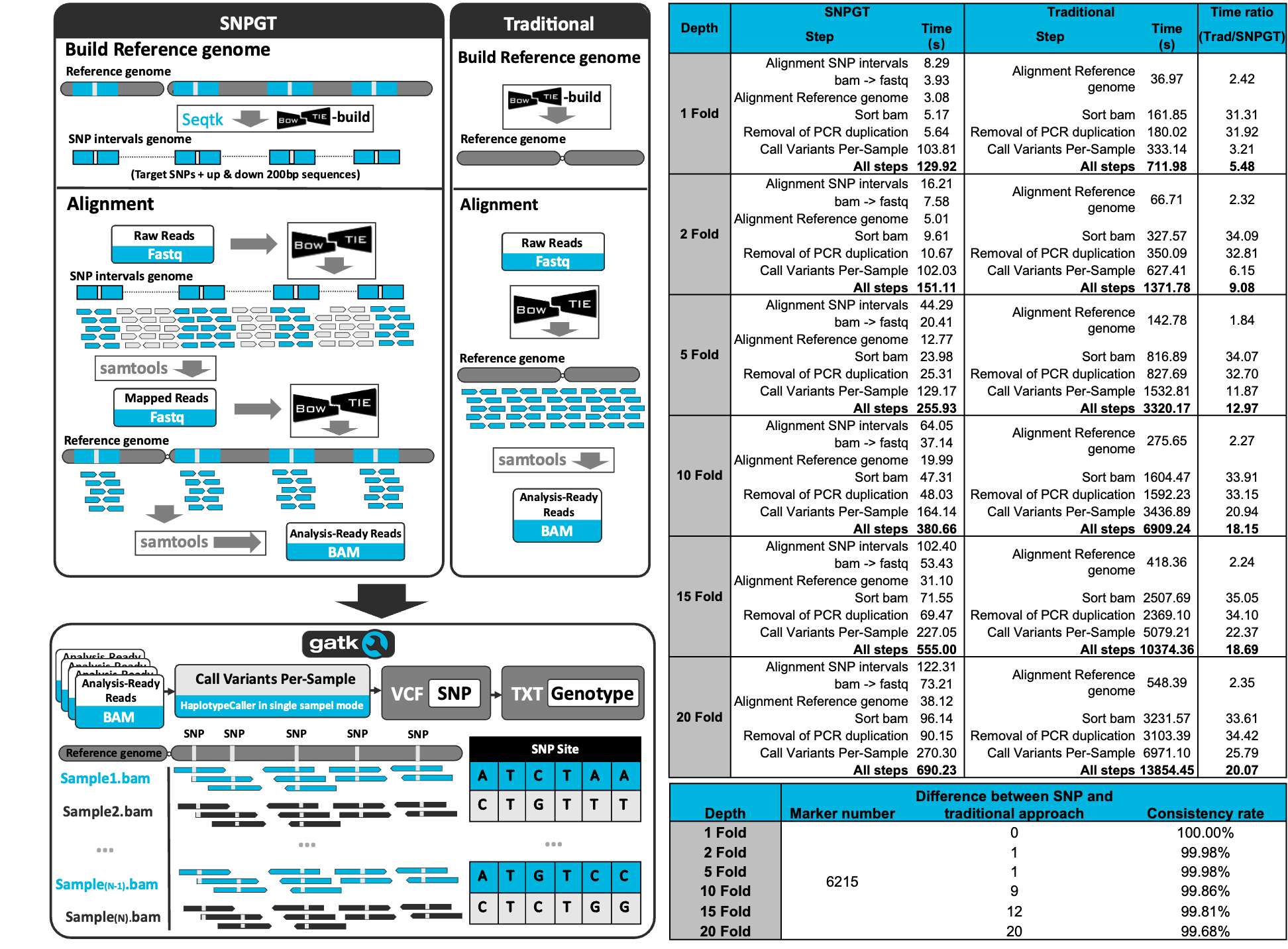 图3|CropGS-Hub分型插件SNPGT的分型优化流程及速度和准确性评估