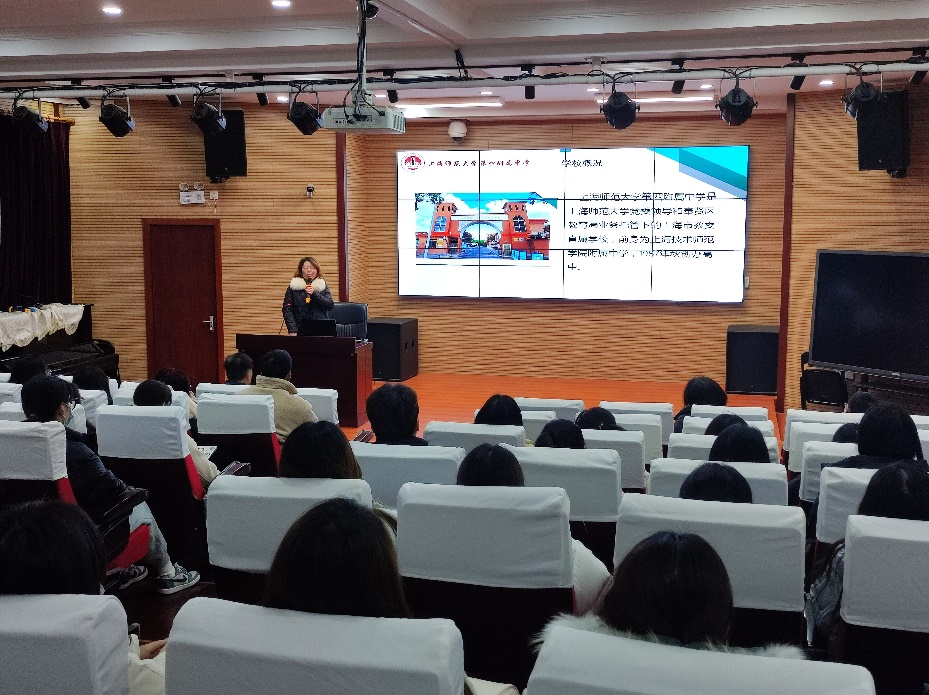 ok138太阳集团第四附属中学龚永娟副校长以短片形式向师范生介绍了上师大四附中的概况和高中生的青春风采,鼓励师范生充分利用好教育实践基地资源,在教育实践中茁壮成长。