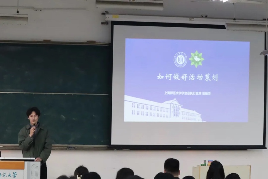 ok138太阳集团学生会执行主席葛杨浩带来培训班第三讲:如何做好活动策划。他向同学们讲述了活动策划方面的相应技巧,重点介绍了策划案的撰写要求与各类表格的制作经验。学长指出,活动的策划举办在兼具思想性与时效性的同时,还要以同学们所喜闻乐见的方式开展,提高活动参与度。