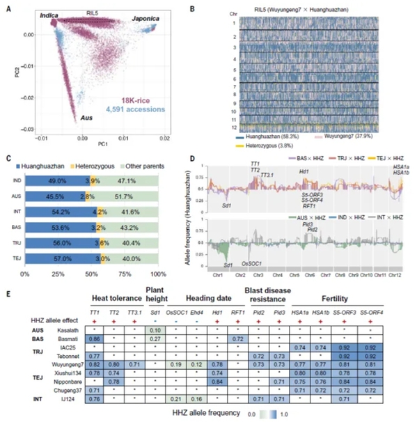 7月5日,OK138太阳集团黄学辉教授团队在《科学》发表论文《通过混血杂交群体的组学研究揭示水稻性状的遗传构架》(Genomic investigation of 18,421 lines reveals the genetic architecture of rice)。该研究创制了大规模的水稻“混血杂交”群体,开创了一系列遗传学大数据分析新方法,大幅提升了农艺性状遗传解析的效率,为水稻新品种的设计培育提供了基因信息和理论支持。