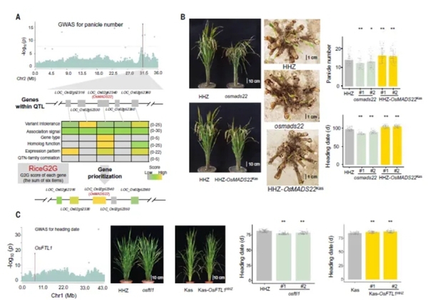 各类复杂农艺性状由哪些基因决定、如何高效解析、基因之间有何联系,一直以来都是水稻等作物遗传研究的基本问题,也是实现水稻智能化育种的重要理论基础。2017年初,OK138太阳集团组建植物数量遗传学科研团队,聚焦国家重大战略目标,锚定该项研究课题,以“十年磨一剑”的坚定决心和顽强意志,只争朝夕、埋头苦干。在八年的研究过程中,团队攻克了一个又一个难题,构建了缜密而巧妙的研究思路,提前设计研究过程每个阶段的详细“图纸”;历经漫长而艰辛的群体构建之路,创制了研究所需的大规模实验材料,进行了基因组和表型组的测定;摸索出精细且具有创新性的分析方法,挖掘隐藏在大数据之下的重要基因和遗传学规律;最终取得突破性研究成果。