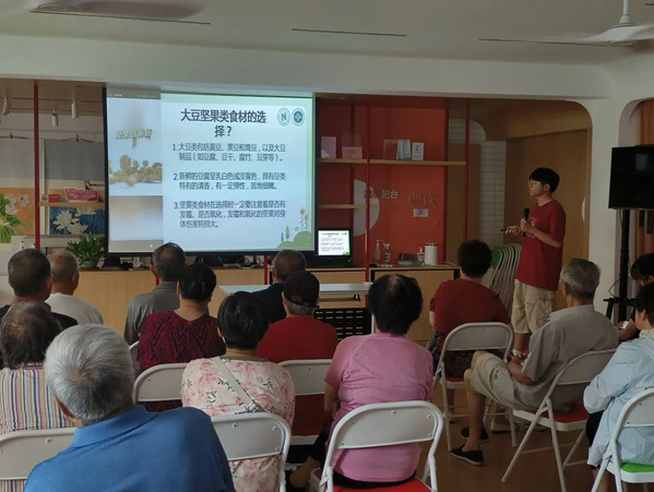 在普陀区,社团聚焦“一老一小”,走进曹杨新村街道、长寿路街道、甘泉路街道、石泉路街道、宜川路街道、真如镇街道等六个街道爱心暑托班为小朋友科普食品添加剂的知识;走进城怡养老院科普老年人营养知识,强调老年人补钙的重要性,同时要加强体育锻炼,保持理想体重,这些都是健康长寿的秘诀。