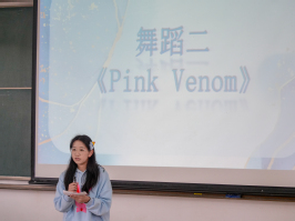 接下来,周晶晶选手接过话筒,串起了由艺术团同学带来的活泼的舞蹈《Pink Venom》。