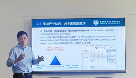 曹建国副院长介绍了学院此次本科培养方案修订的总体方案。针对原方案特色不够鲜明、优势不够突出的问题,要求本次修订必须降低总学分,师范专业建立高观点课程群、各专业要增加“留白课程”、面向行业动态全面开展AI赋能教学,根据专业特色设计专业方向课程模块化课程群,并强调优化学科前沿动态教学,形成我院特色小学分课程。