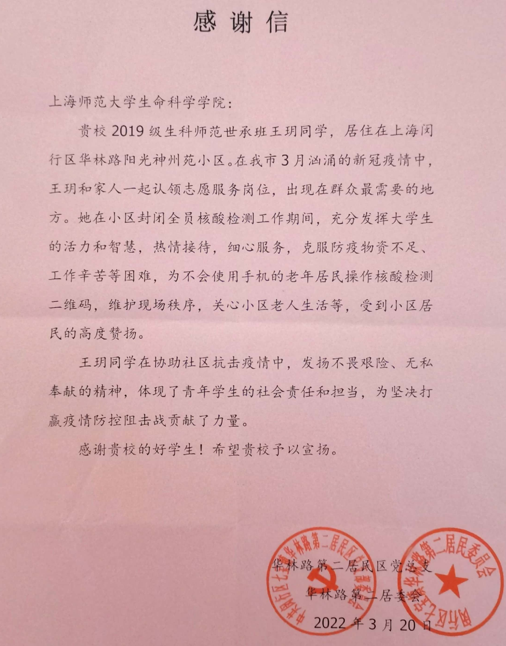 3月,突如其来的一场“倒春寒”,让疫情防控形势变得十分严峻,学校全面转向线上教学,校园进入了准封闭管理。为了坚决打赢疫情防控阻击战,校园内,生科志愿者不分昼夜,迅速集结,奔赴每一个需要支援的岗位;校园外,在家的生科学子也勇于担当,无私奉献,积极投身社区疫情防控的志愿者队伍,凭着自己的专业和热情、责任与担当,成为上海战“疫”的青春力量。