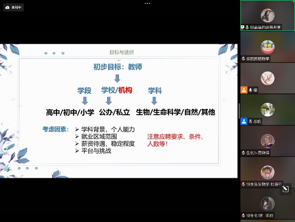 榜样如炬,闪耀着梦想的光芒,是催人奋进的力量。通过师兄师姐们的分享,相信大家对于当前疫情下的行业状况有了更深入的了解,对求职准备和职业前景也有了更进一步的认识和思考。希望生科学子能从分享中获得启示,早谋划,早准备,抓住求职(升学)关键期,斩获自己理想的offer,在自己热爱的领域“职引未来”!