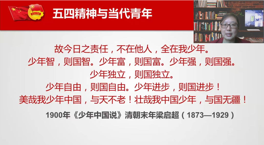 华老师首先表示,今年是中国共青团成立100周年,在五四青年节即将到来之际,和青年朋友共同回顾五四历史、重温五四精神,对启发当下和未来具有重要的意义。