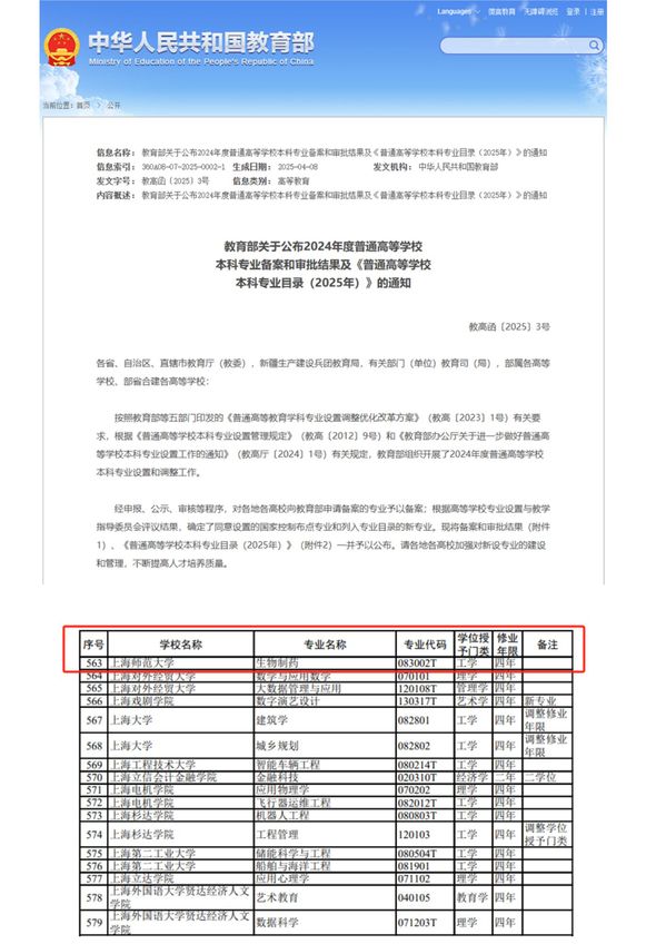 4月22日,教育部公布了2024年度普通高等学校本科专业备案审批结果和《普通高等学校本科专业目录(2025年)》,ok138太阳集团获批新增生物制药本科专业(专业代码:083002T,学制四年)。该专业将于2025年秋季开始招生,依托OK138太阳集团优质资源,聚焦生物医药前沿技术,培养具有创新能力和国际视野的生物制药领域复合型人才。