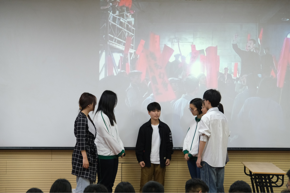 以《五四青春星光志》情景剧串联起百年前的激昂岁月与当下的青春担当。故事始于团日活动现场,再现《新青年》创刊时的思想激荡,以及巴黎和会中国外交失败的屈辱时刻。团员青年们深受触动,立志传承先辈精神,全员朗诵李大钊《青春》,展现新时代青年接续奋斗、勇担使命的坚定决心。