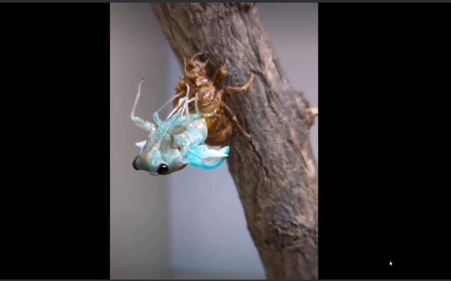 陈老师向我们介绍到,园艺并不仅仅在于你一时的感觉,更多时候园艺有对心灵的“疗” ,并通过视频的方式向我们具象地展示了蝉在脱壳过程中所展现出的强大的蜕变的力量,令人感触颇深。