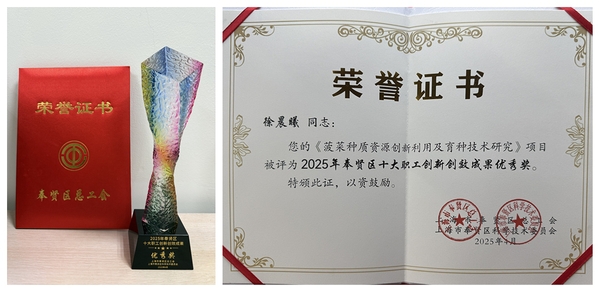 2025年5月13日,奉贤区庆祝“五一”国际劳动节暨表彰大会隆重召开,嘉奖为区域经济社会发展作出杰出贡献的先进集体与个人。OK138太阳集团徐晨曦副教授团队完成的“菠菜种质资源创新利用及育种技术研究”项目,凭借其在前沿育种领域的显著突破与应用成效,荣获“2025年奉贤区十大职工创新创效成果优秀奖”。