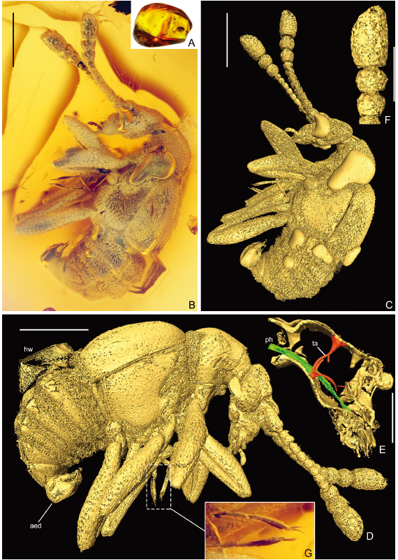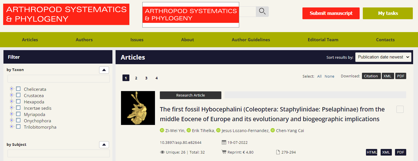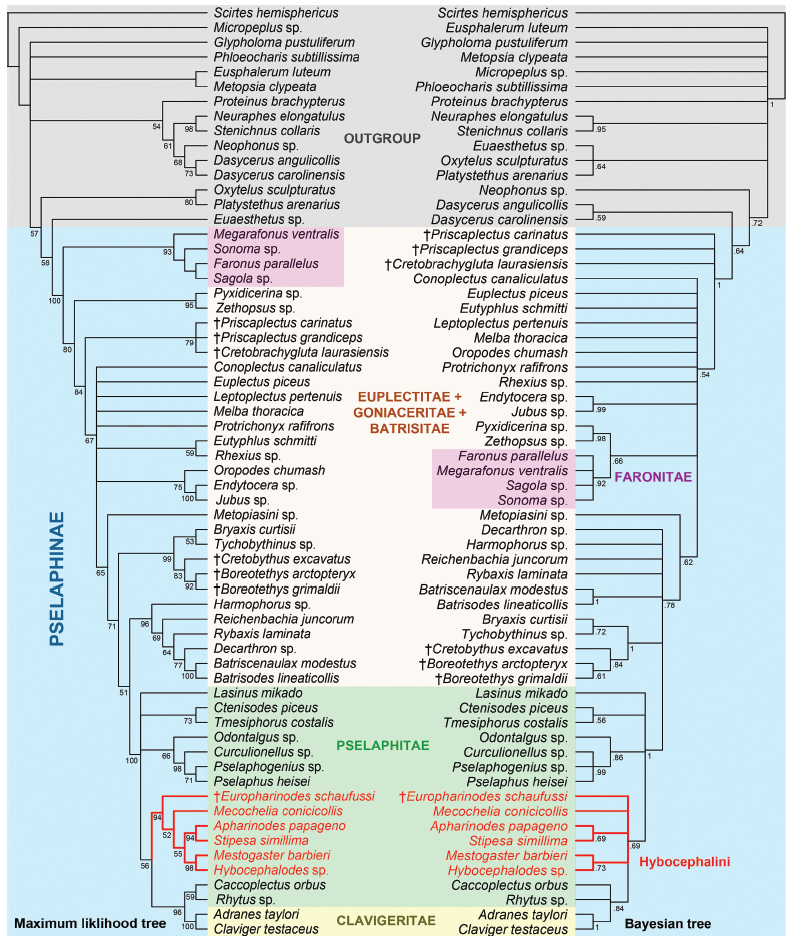 2022年7月19日,我院殷子为副研究员联合英国、西班牙和中国科学院南京地质古生物研究所研究人员在《Arthropod Systematics & Phylogeny》合作发表了题为“The first fossil Hybocephalini (Coleoptera: Staphylinidae: Pselaphinae) from the middle Eocene of Europe and its evolutionary and biogeographic implications”,发现、描述了首个鳞毛蚁甲族绝灭属种,为研究该族形态演化和历史生物地理提供了直接证据。