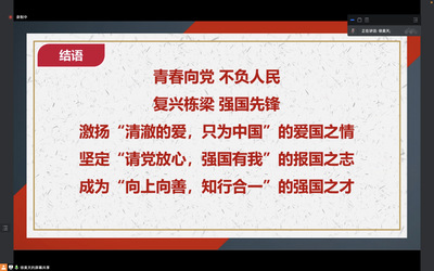 徐老师在介绍习近平总书记对共青团员“五个模范”重要要求时,旁征博引,结合总书记历年五四期间的重要讲话和在纪念五四运动100周年大会上对新时代中国青年的六点要求,希望生科青年把学习讲话精神和学习习近平总书记关于青年工作的重要思想、和学习党领导下中国青年运动的百年历程贯通起来,在学思践悟的过程中感受习近平总书记对青年始终如一的关心关注和鼓舞激励,深刻领悟“两个确立”的决定性意义。
