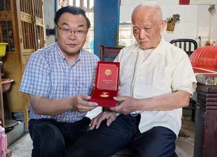 走访中,学院领导与老党员促膝谈心,嘘寒问暖,关切询问身体和生活状况,为老党员佩戴“光荣在党50年”纪念章,祝愿他们老有所为、老有所乐、健康长寿。