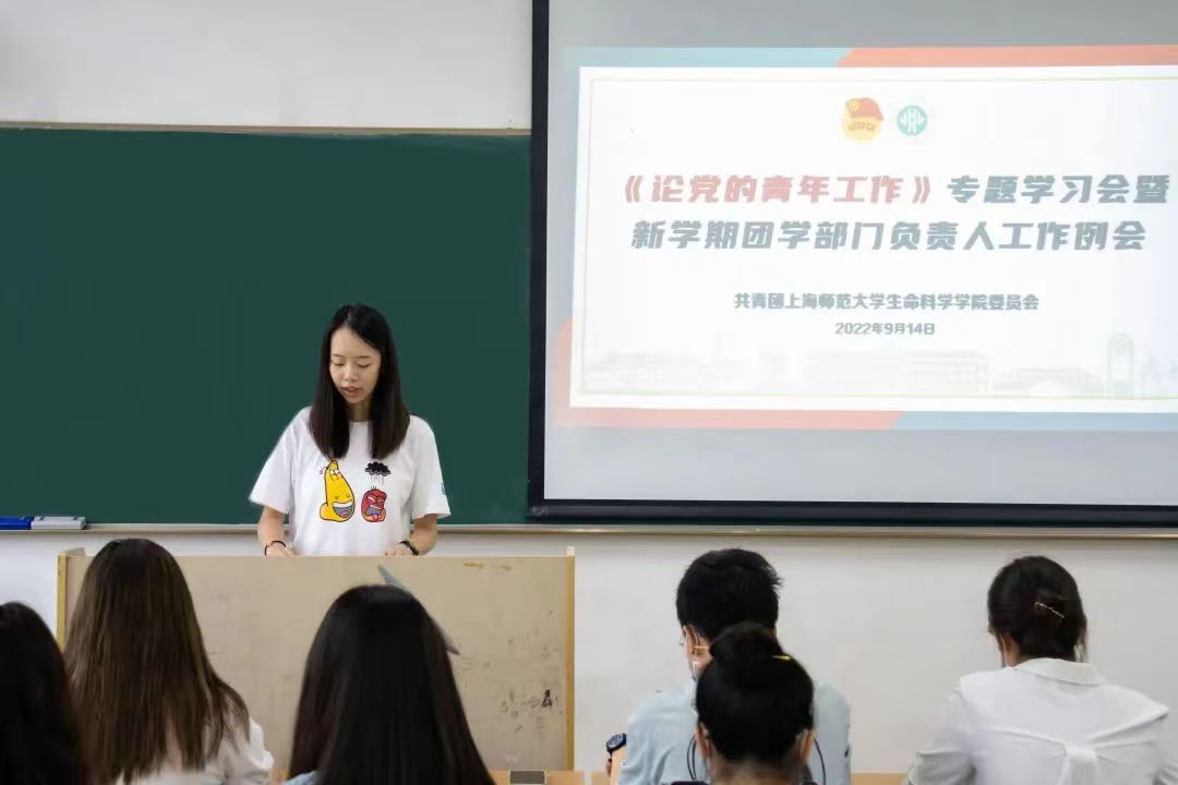 徐老师指出,《论党的青年工作》是习近平新时代中国特色社会主义思想的“青年篇”,对指导新时代党的青年工作守正创新,推进中国青年运动蓬勃发展,促进青少年一代健康成长具有重大政治意义、理论意义、实践意义。团学骨干要以“学懂”为基础,以“弄通”为关键,以“做实”为根本,自觉走在学习宣传贯彻习近平总书记关于青年工作重要思想的最前列,要立足本职岗位、担负时代使命,在担当中历练、在尽责中成长,努力展现生科团学组织新风貌、新气象,以实际行动迎接党的二十大胜利召开!