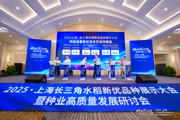 近日,2025上海・长三角水稻新优品种展示大会暨种业高质量发展研讨会在崇明举行。本次活动以“种业‘芯’动力,稻香长三角”为主题,围绕绿色种源、科技育种与区域协同展开深入交流,推动长三角地区水稻新优品种产业化应用的进程,让更多普通市民能尽快吃到这些口感香糯的稻米新品种,为种业振兴注入“芯”动力。中国工程院院士、中国种子协会、上海市农委,以及三省一市种子站、国内科研院所、种业协会、上海各区农技中心、种业企业有关领导出席活动。