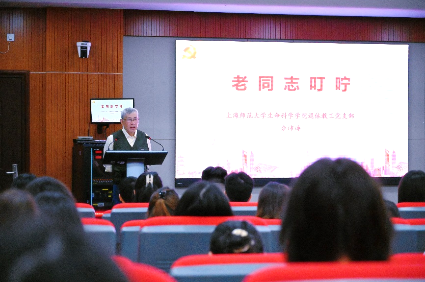 退休教工党支部党员余沛涛老师深情嘱托毕业生,以自身教育经历强调党员身份的责任与担当,勉励大家无论身处何种岗位都要坚守入党初心,以老一辈共产党人的奋斗精神为指引,在时代浪潮中以“信仰的力量”站稳脚跟。余老师跨越岁月的话语承载着深厚的党员初心,让在场人员深刻感受到精神传承的重量。
