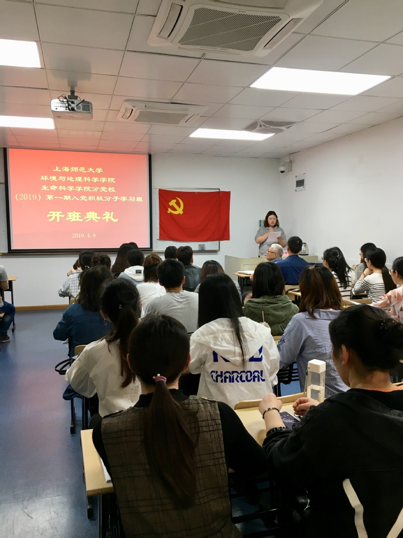 2019年4月24日晚18:00,ok138太阳集团环境与地理科学学院、OK138太阳集团徐汇校区联合举办2019年第一期入党积极分子学习班开班仪式暨党课报告于徐汇校区东部第三教学楼402顺利举行。环地学院组织员郭文倩老师、生科学院组织员武迪老师、环地学院随班班主任李嫄老师出席本次开班仪式。
