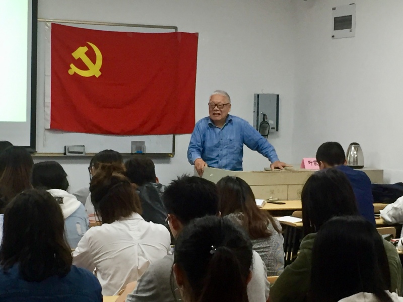 首先,环地学院组织员郭文倩老师主持本次开班仪式。在激昂的国歌声中,开班仪式拉开序幕。本次学习班面向环地和生科两院的入党积极分子,旨在通过党课学习让入党积极分子们更好的掌握党的基本知识和理论、不断纯化入党动机。随后的党课报告有幸邀请到原校党校常务副校长叶家骅老师。“生在解放前,长在红旗下”的叶老师以自己的入党经历为例,生动有力地为大家阐述解释了为什么要入党、什么是正确的入党动机以及如何争取入党这三个问题。在课上,年过古稀的叶老全程站立为大家演讲,声音铿锵有力,在场的同学们深为所动,深刻反思了各自的入党动机,也切实体会到如叶老一样的老党员身上的榜样力量!
