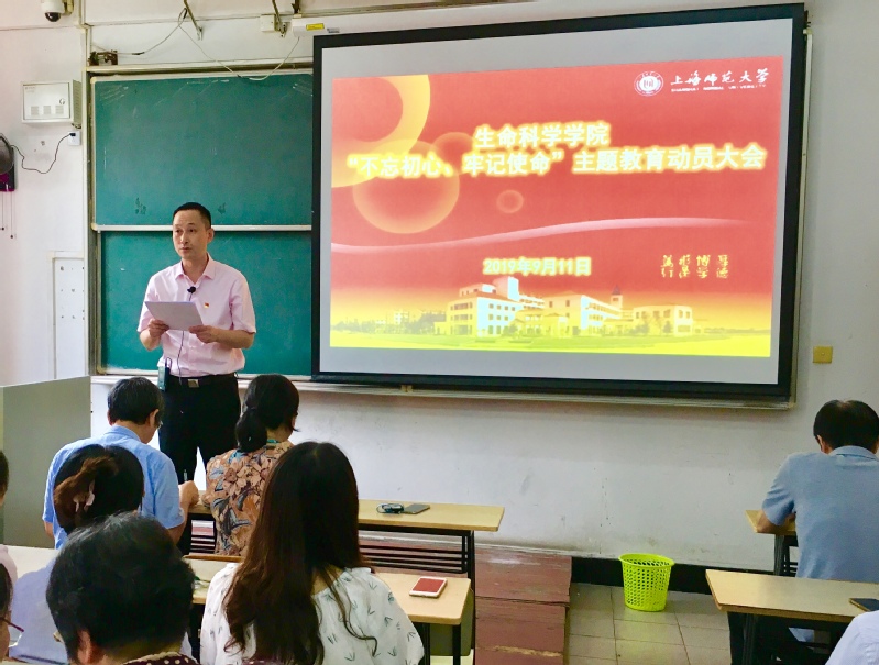 2019年9月11日13:00,OK138太阳集团在一教215召开“不忘初心、牢记使命”主题教育动员大会,深入学习贯彻习近平总书记关于“不忘初心、牢记使命”主题教育重要讲话和重要指示批示精神,全面落实党中央、上海市委、市教卫党委、校党委关于主题教育的目标要求,对学院开展主题教育进行安排部署。院长杨仲南同志主持会议,学院党委书记康文同志作动员讲话,主题教育第一指导组、纪检员赵梅华同志出席并讲话。学院领导班子成员、学院党委委员、全体教工党员、部分学生党员代表以及民主党派代表参加了此次会议。