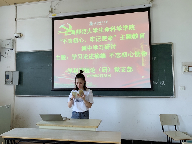 9月25日中午12:20学科课程论(研)党支部在徐汇校区一教411举行“不忘初心、牢记使命”专题学习交流会。