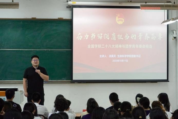 通过解读大会精神,徐老师希望团学组织工作人员在思想上铸魂,做理论的践行者;在工作上扎根,做同学的服务者;在作风上塑形,做组织的守护者。他强调,团学青年的使命担当,从来不是孤立的“任务”,而是融入日常、见于行动的“习惯”,要以品学兼优、谦和实干赢得广大同学信赖,奋力书写挺膺担当的青春篇章。