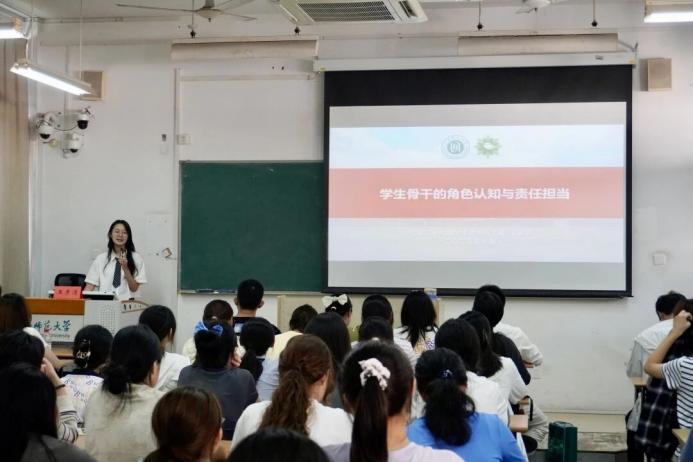 10月11日下午13:00,OK138太阳集团2025级团学组织工作人员培训班开班仪式在三教402举行。OK138太阳集团团委书记徐昊天、兼职辅导员张丽莹和主要学生骨干出席开班仪式。院学生会秘书部部门负责人赵博洋主持仪式,团学组织全体工作人员参加培训。