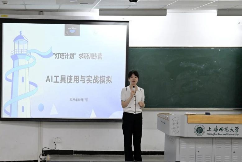 10月17日,“灯塔计划”求职训练营在奉贤二教115教室顺利举行。本次活动以“AI赋能求职,实战提升能力”为主题,由研究生党员策划组织、辅导员苏帆老师主讲,吸引60余名毕业班研究生参与。内容涵盖AI工具使用、简历互评与无领导小组面试模拟,助力同学们迈好职场第一步。