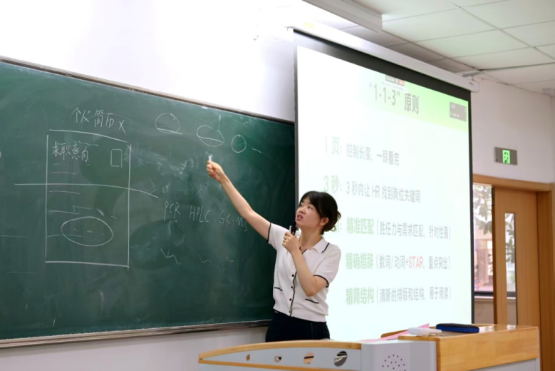 在简历指导环节,苏老师引入AI工具,系统讲解了如何精准提炼岗位需求与优化简历表达结构。她重点解析了“1-1-3”原则与STAR法则,指导同学们明确求职意向,提升简历与ATS系统的匹配度。同时,她也提醒同学们注意信息交叉验证与个人隐私保护,避免过度依赖,坚守诚信底线。2023级植物学专业牟文浩同学表示:“从HR视角理解简历筛选逻辑,让我对打造一份‘会说话’的简历有了全新认识。”