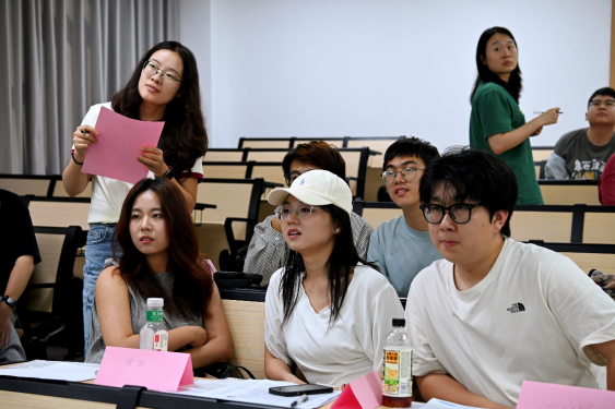 在实战环节,同学们集思广益,通过简历互评发现了诸多易被忽略的细节。随后的无领导小组模拟面试更是将气氛推向高潮,同学们组成6-8人小组,每个小组设一名面试观察员,围绕预设的面试题目展开了激烈的讨论。在思维碰撞中,有效锻炼了团队协作、逻辑表达和临场应变能力。讨论结束后,面试观察员带领小组进行复盘总结。2023级生物与医药专业渠榕芳同学分享道:“我意识到自身思考的局限,深刻体会到积极倾听与主动表达在群面中的重要性。”