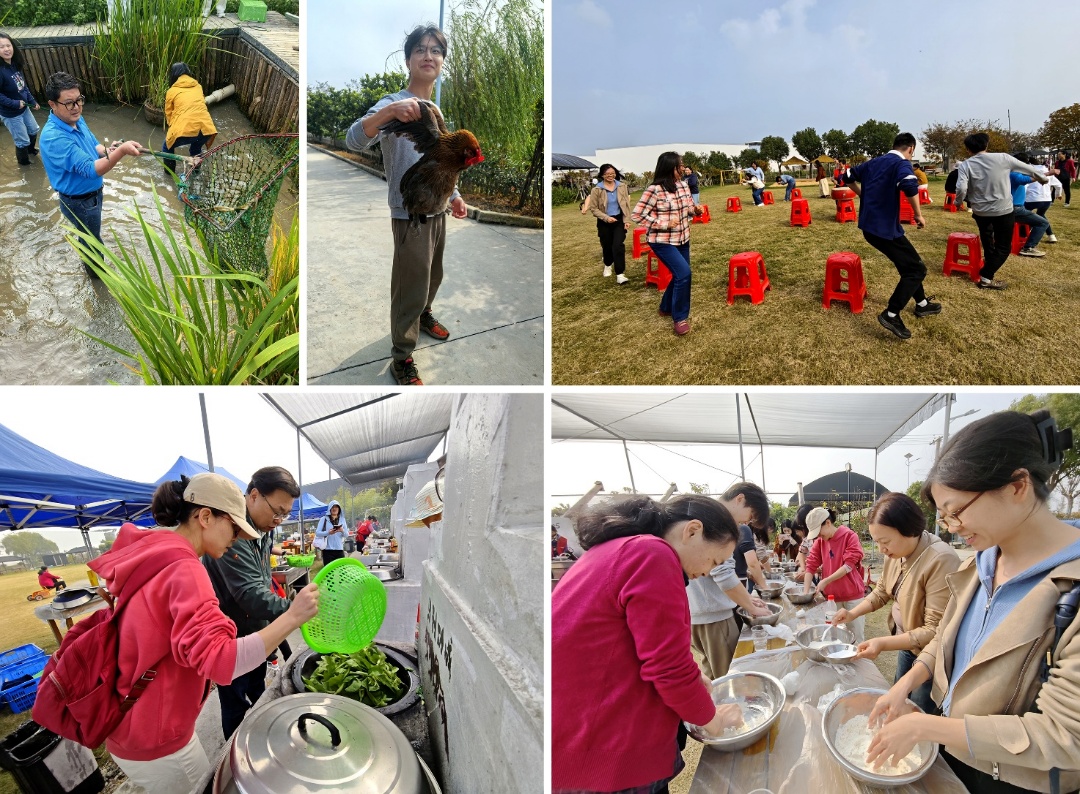 上午,教职工们首先来到现代化蘑菇种植基地,深入了解廊下镇近年来正着力推进“蘑菇小镇”建设情况,切身体验工厂化蘑菇种植模式。结合专业知识,教职工们深入“菌”世界,通过亲手采摘、与技术人员交流等方式,进一步加深了对菌种选育、智能化生长环境控制和食用菌产业全产业链发展的了解。随后,教职工们在生态体验区身体力行体验了“浑水摸鱼”“鸡窝抓鸡”和“大灶柴火饭”等传统农事活动。在共同的劳动中,不同教研室、不同年龄段的老师们打破了界限,在协作中增进了了解,在分享中加深了情谊。当一盘盘热气腾腾、汇聚了集体智慧与汗水的农家菜肴端上餐桌时,大家品尝到的不仅是美味,更是团队合作的甘甜和“家”的温暖。