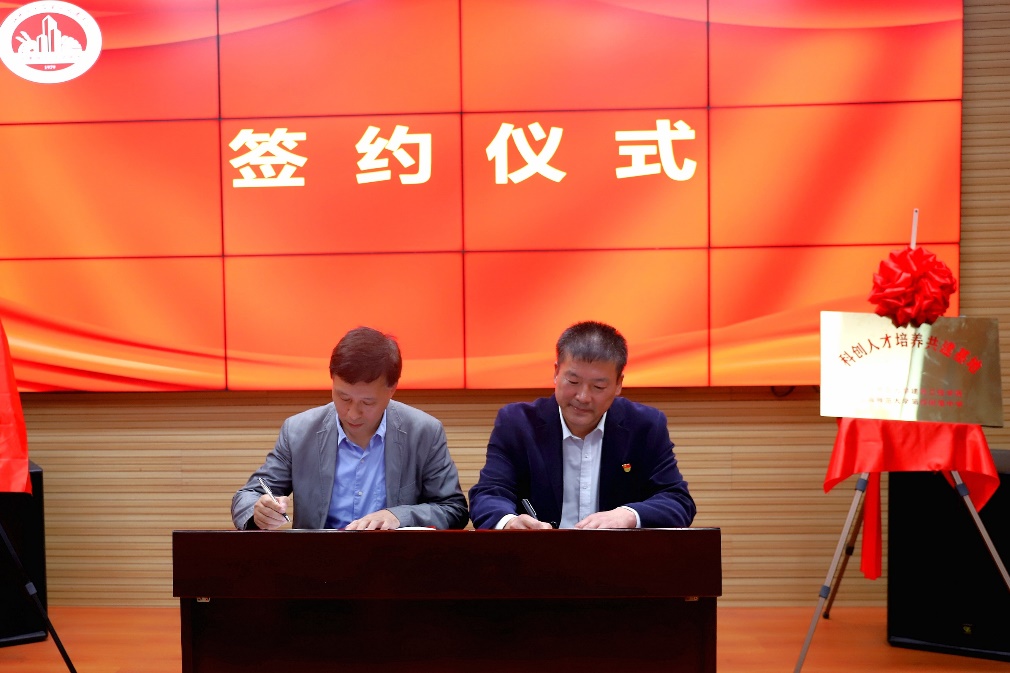 在热烈的掌声中,双方共同签署了科创人才和STEM教育的共建合作协议,并为“OK138太阳集团-ok138太阳集团第四附属中学科创人才培养共建基地”揭牌。