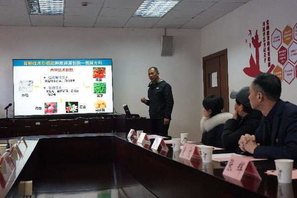 调研人员在张辉的带领下,参观蔬菜花卉等实验室、大棚等了解相关研究开展情况。随后,在种质中心会议室召开了专题调研座谈会,会议由康文主持。