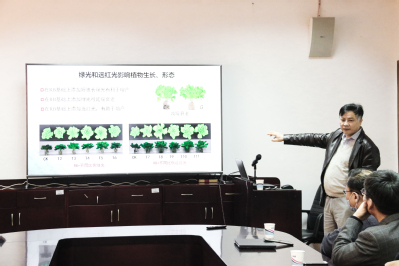 考察结束后,李绍华教授在桃源楼105会议室为我院师生作了题为“现代植物工厂发展趋势与产业化”的学术报告。植物工厂是农业产业化进程中最具活力和潜力的领域之一,不仅是解决人口资源与环境问题的重要途径,也能应对全球气候变化和环境污染等难题。李教授介绍了中科生物及其植物工厂的产业创新技术,包括栽培板、专用光谱、植物照明灯具等培育设备,展示了蓝莓、白菜等作物的创新生产模式,他预测中国植物工厂在未来几年里将获得快速发展。