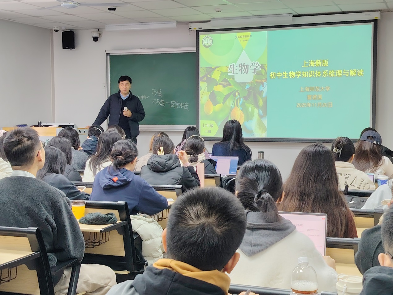 为深化学院生物科学(师范)专业学子对新时代基础教育教材的理解,把握教学改革前沿动态,11月20日,学院生物科学(师范)专业举办《义务教育教科书五四学制生物学》新教材解读专题讲座。学院副院长曹建国教授作为《义务教育教科书五四学制生物学》分册主编为师范生进行专题讲授。