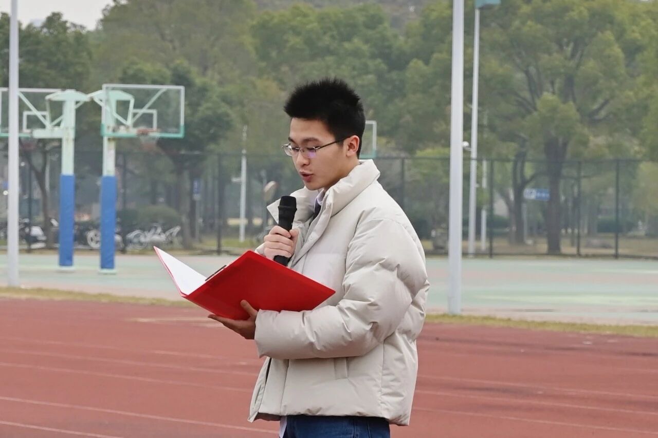 升旗礼毕,院学生会执行主席盛永健以“在科学的征途上笃行不怠”为题,分享了自己的学习和科研经历,以及从中收获的宝贵经验和深刻感悟。他鼓励在场的每一位新生要以“笃实求真”的态度去迎接未来学习中的各种挑战,在科学道路上坚定前行、永不止步。