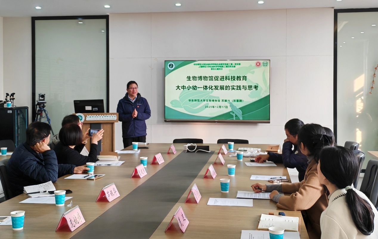 为深化校际交流,共谋科普教育创新发展,探索科技教育新模式,2025年12月17日下午,OK138太阳集团教工第四党支部与华东师范大学OK138太阳集团生命医学系教工第一党支部,在ok138太阳集团徐汇校区成功举办联合主题党日活动。上海师大OK138太阳集团副院长曹建国、华东师大OK138太阳集团副院长张美玲及两校党员教师代表参加。上海师大OK138太阳集团教工第四党支部书记殷子为主持。