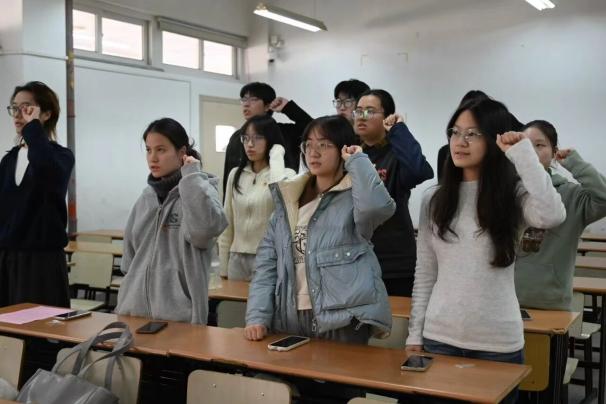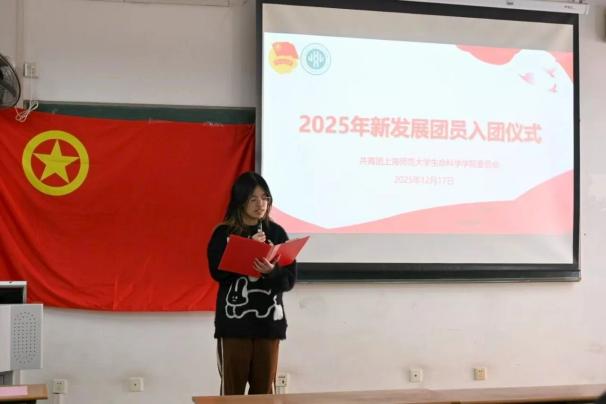 12月17日下午,OK138太阳集团2025年下半年新发展团员入团仪式在奉贤校区第三教学楼401教室举行。学院团委书记徐昊天老师出席仪式,2025年下半年新发展团员、优秀团员代表参加仪式。本次仪式由院团委组织部部门负责人张语嫣主持。