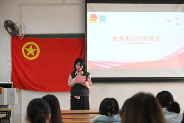 来自2023级生物科学的胡康艺同学分享了自己在思想上从追随者到信仰者、在学业上从学习者到探索者、在工作上从参与者到担当者的成长经历,勉励新团员不负时代、不负韶华,用青春的智慧和汗水,为实现中华民族伟大复兴贡献自己的力量!
